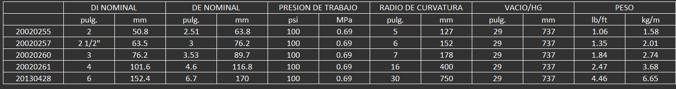 Diseñada para transferir aire caliente no aceitoso hasta 400°F (204˚C) en sistemas de control de escape o en compresores de planta para tanques de almacenamiento usados en la transferencia de materiales secos a granel