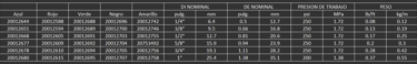 Rango de Temperatura: -10˚F a 158˚F (-23˚C a 70˚C) for GS y Plus 250