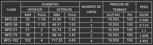 Presentación: En tramos de 15.24 y 30.48 metros según diámetro.