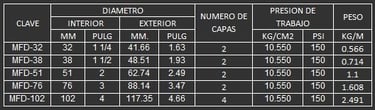 Refuerzos: Varas capas de cuerda de poliéster impregnado en hule.