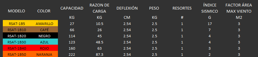 Son “anti vibratorios” y “anti sismo” ya que tienen un “exoesqueleto” de acero y dos postes que limitan los movimientos, sus resortes de 1” de deflexión nom. hacen que sean muy buenos en bajas frecuencias.